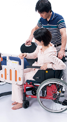 ベッドから車いすへの介助移乗(トランスファーボードを使った場合)