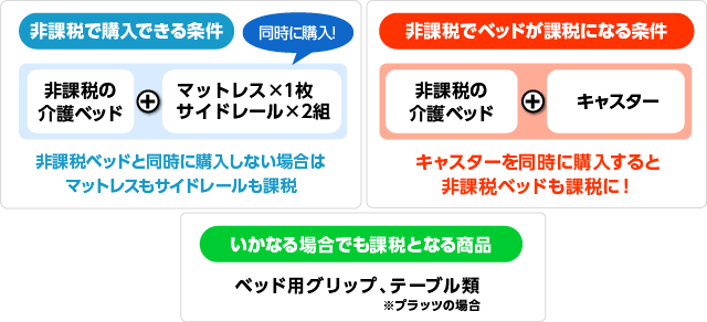 - 身体状況の変化によりベッドやマットレス、サイドレール等を変更できます。